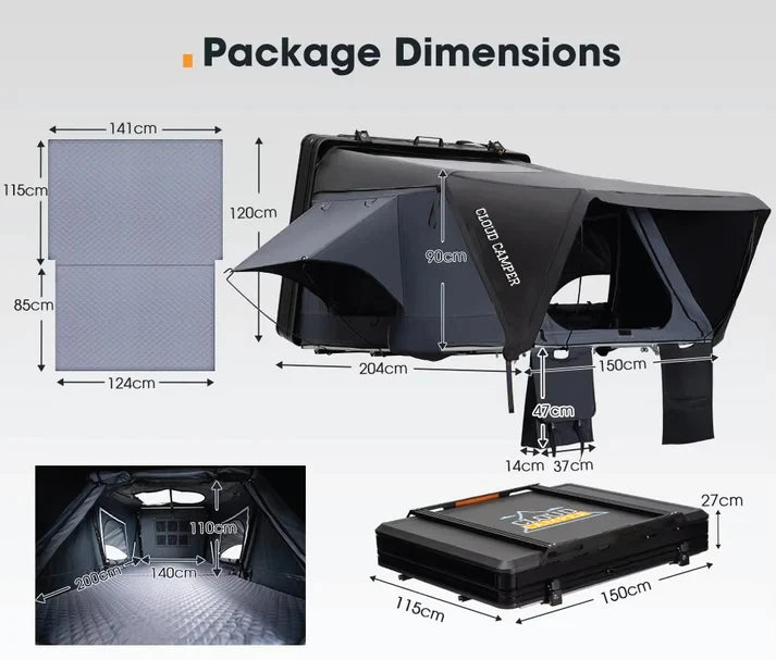 Enhance your off-road escapades with the Cloud Camper 4x4 Car Roof Tent. Engineered for rugged adventures, this roof tent transforms your 4x4 vehicle into a cozy retreat in no time. Constructed with a hard shell made from Aluminum, Oxford, and cotton fabrics, it ensures exceptional UV resistance and waterproof protection, keeping you and your companions dry and comfortable.