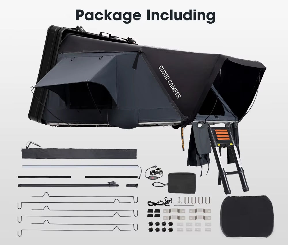 Cloud Camper Kalbarri Z 4-Person Hard Shell Roof-top tent for 4WD Camping (With Solar Panel Bracket, Mattress and Ladder)